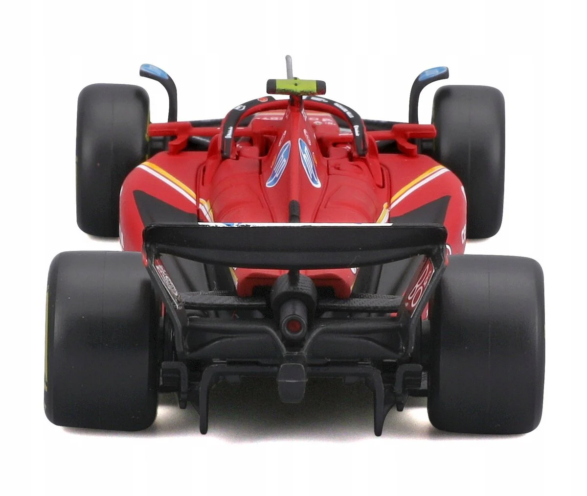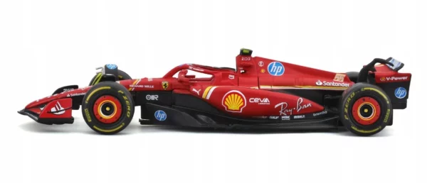 - Authentic Design: Accurately recreates the sleek aerodynamic profile and signature Ferrari red livery of the SF-24 as raced by Carlos Sainz at Imola, where he finished in 5th place during the 2024 season.