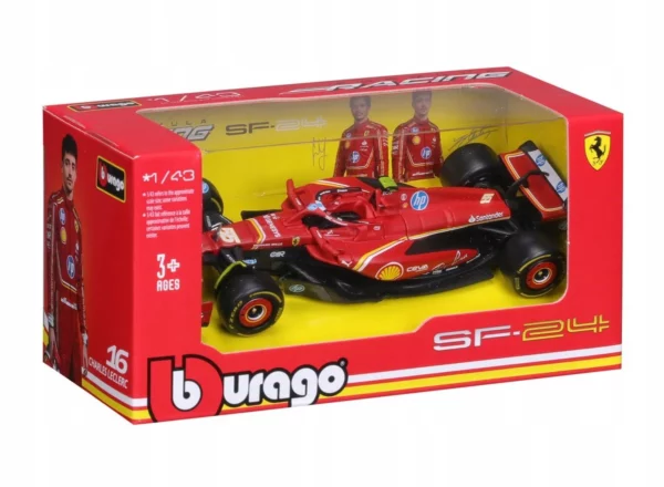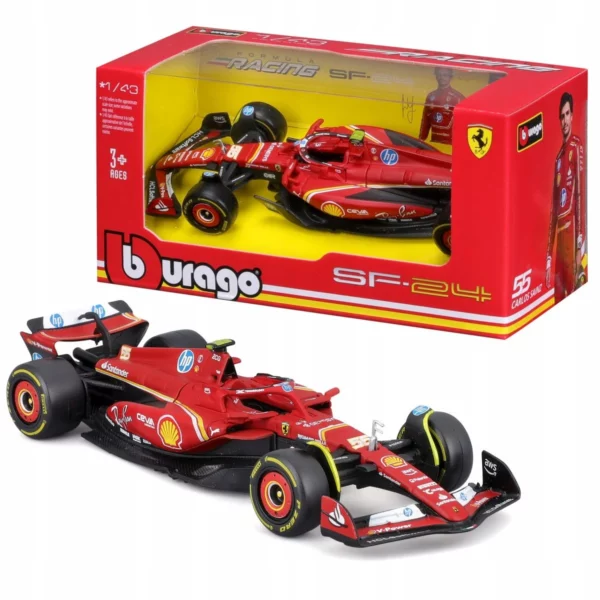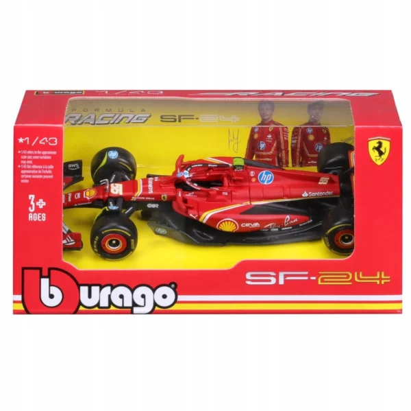 - Official Ferrari Packaging: Supplied in a branded paper box featuring Carlos Sainz’s image and SF-24 graphics — ideal for collectors and Ferrari fans alike.