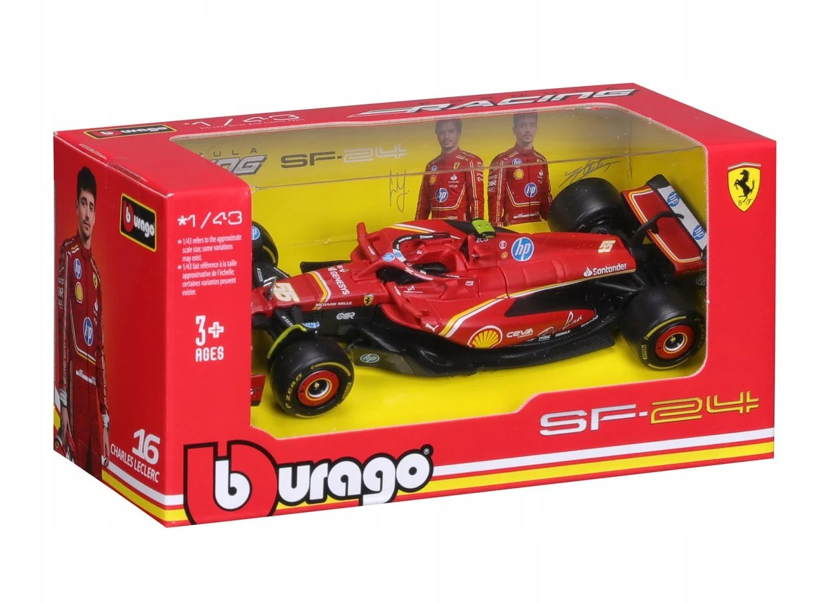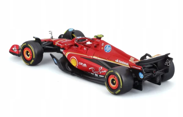- Detailed Finish: Features precise sponsor decals, realistic Pirelli tires, cockpit detailing, and race-specific markings true to the 2024 Formula 1 Ferrari SF-24.