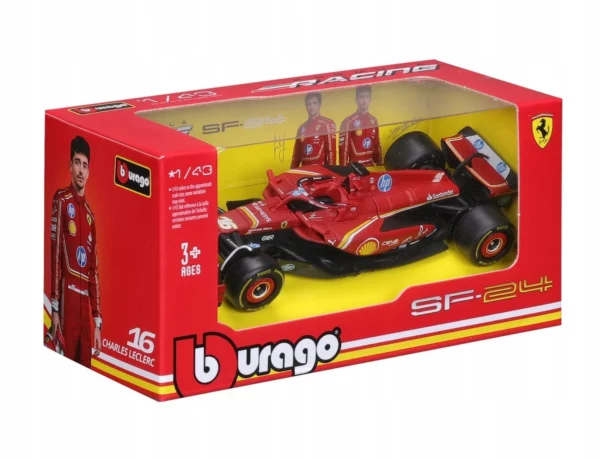 - Official Ferrari Packaging: Supplied in a branded paper box featuring Charles Leclerc’s image and SF-24 design — perfect for collectors or as a gift for any Formula 1 enthusiast.