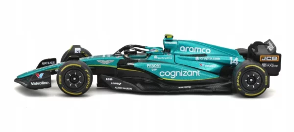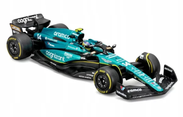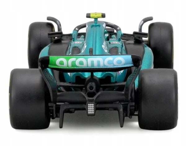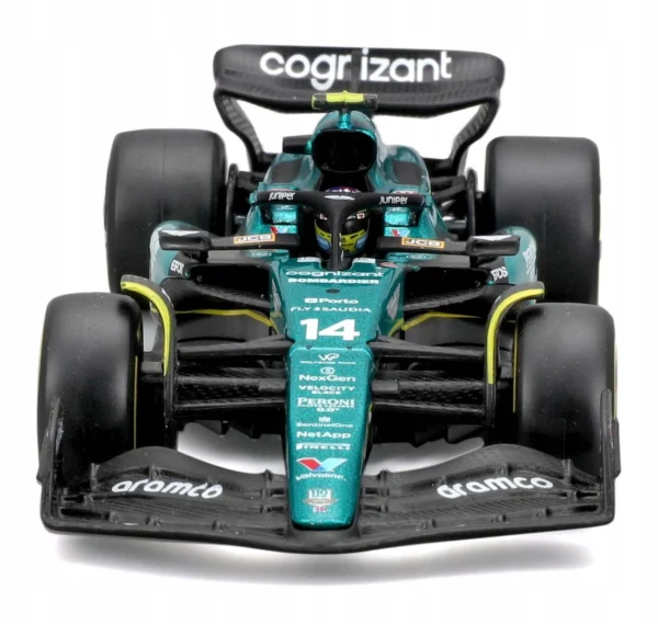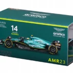 • Authentic Design: Faithfully replicates the aerodynamic shape and striking Aston Martin green livery of the AMR23 as raced by Fernando Alonso throughout the 2023 season. The fine detailing ensures an accurate representation of the actual race car.