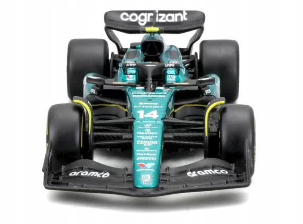 • Authentic Design: Faithfully reproduces the aerodynamic bodywork, distinctive Aston Martin green livery, and #14 race number as driven by Fernando Alonso throughout the 2023 Formula 1 season.