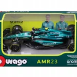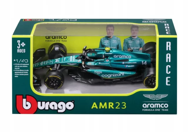 Celebrate Fernando Alonso’s remarkable 2023 Formula 1 season with this detailed 1:43 scale model of the Aston Martin AMR23, car number 14. Officially produced by Bburago, this replica captures the performance, innovation, and striking green livery of the Aston Martin Aramco Cognizant F1 Team’s 2023 challenger.