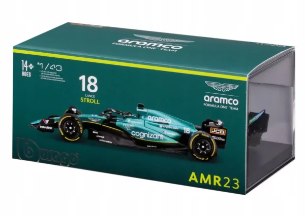 Lance Stroll – Aston Martin AMR23 #18 | Formula 1 Season 2023 | 1:43 Scale Model with Driver Figure & Showcase